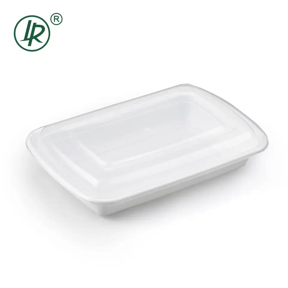 PP Rectangle white Food Combo Container LR-32W Feature: BPA FREE, Stackable, Water and oil resistance, Recyclable, Microwavable, Freezer safe, Patent, snaps rim closer